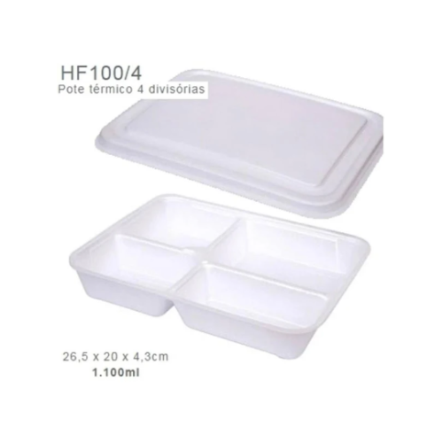 Bandeja Isopor HF 100/4 com Tampa 4 divisões- 1000ml com 100un – Fibraform