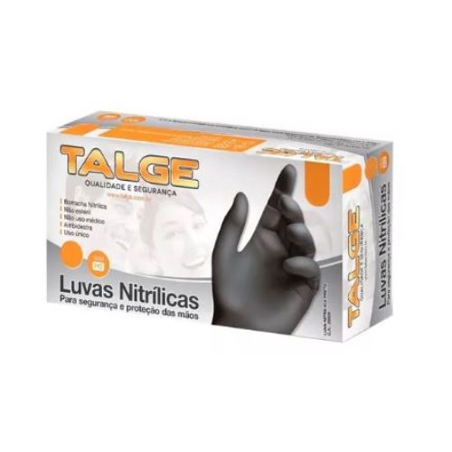 Luva Nitrílica Preta sem pó M – 100 unidades – Talge