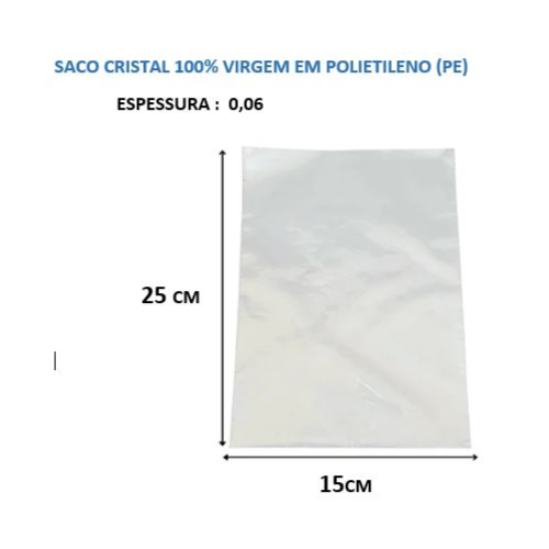 Saco Cristal PE 15 x 25 com 1 Kg(aprox. 440 uni)