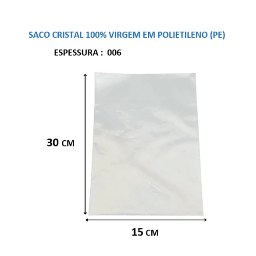 Saco Cristal PE 15 x 30cm -0,06-1 Kg(aprox 370un)