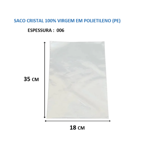 Saco Cristal PE 18 x 35 – 0,06- com 5 Kg (aprox 1300 un)