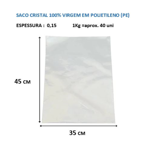 Saco Cristal PE 35 x 45 x 0,15 com 5 Kg (aprox. 200 uni)- Plasjope
