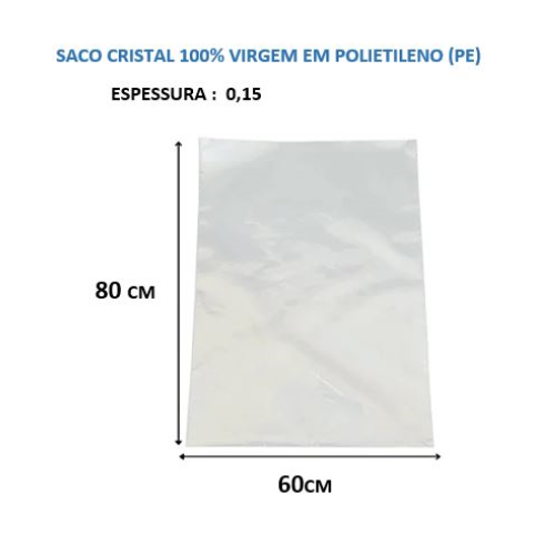 Saco Cristal PE 60 x 80cm – 0,15 com 1 Kg(aprox. 14 uni)